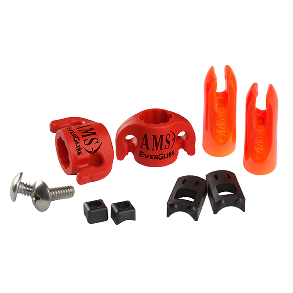 AMS Bowfishing Safety Slide. Pkg of 2 fits Standard 5/16 Arrows. Keeps line away from bowstring and arrow rest on the shot. Pkg Includes Parts For 2 Arrows.