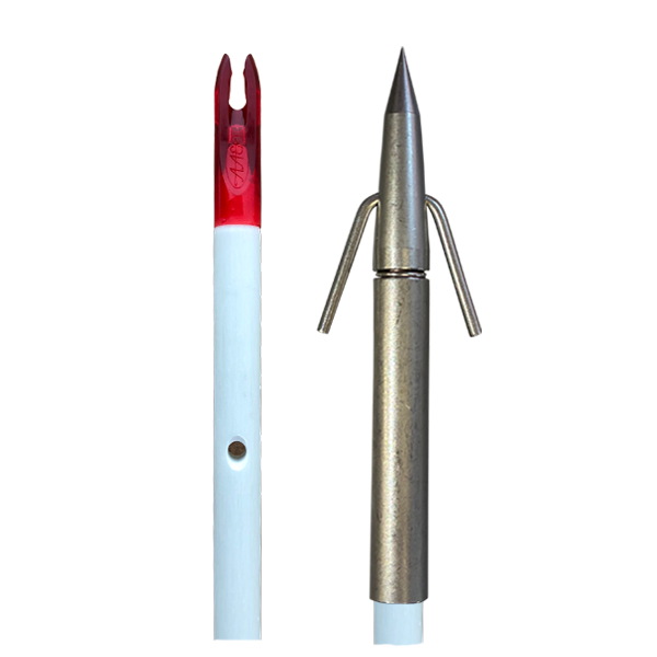 Built for maximum penetration and durability, this arrow features a heat-tempered, hardened stainless steel point for unmatched strength and performance. Reverse barbs allow for quick, easy fish removal with a simple twist of the arrow—no tools required. Precision-crafted for serious bowfishers and proudly Made in the USA